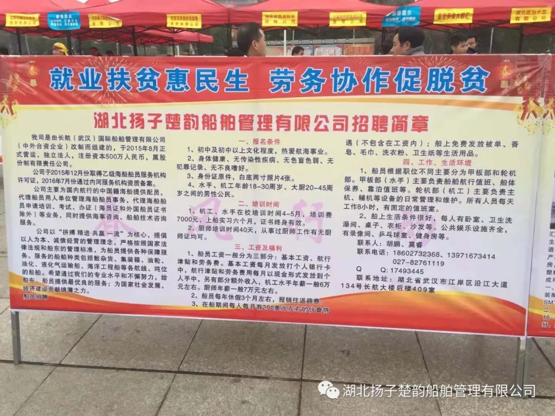 2019年2月16日,我司参加了由武汉市就业局、十堰市郧西县人民政府、社会保障局在郧西县劳动广场主办就业扶贫劳务对接招聘会,洽谈了部分就业人员,达到了此次参加活动的目的。
