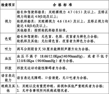 2、申请内河船舶船员《适任证书》所需的岗位健康(体检)标准有哪些?