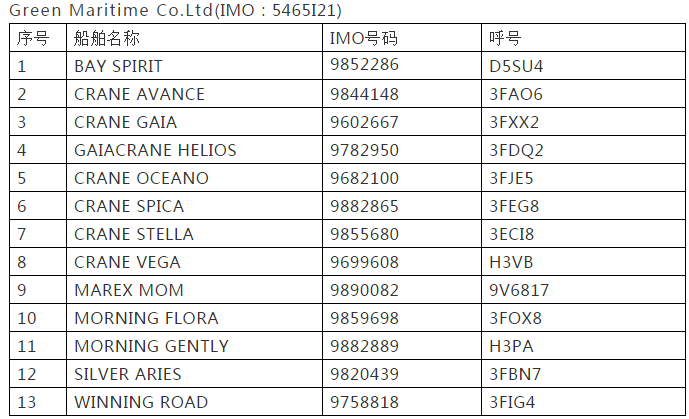 附件:Green Maritime Co.Ltd公司所属船舶列表