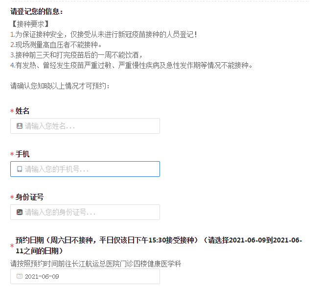 1.为保证接种安全,仅接受从未进行新冠疫苗接种的人员登记!