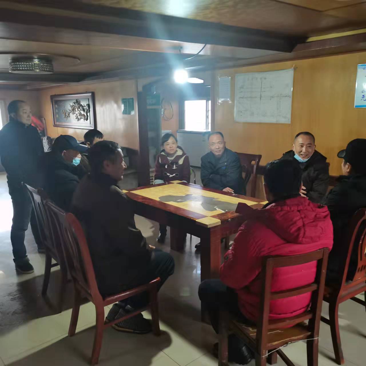 2022年1月26日湖北扬子楚韵船舶管理有限公司总经理带队与船东一起走访基层船舶,在船上公司领导及船东与船员朋友进行了亲切的交谈,肯定了大家在2021年取得的工作成绩,同时也指出了一些不足,并对2022年春节期间船舶的安全生产工作做了具体部署,船员朋友们也踊跃发言,提出了许多很好的建议,会谈气氛欢快融洽,大家互致新春祝福。