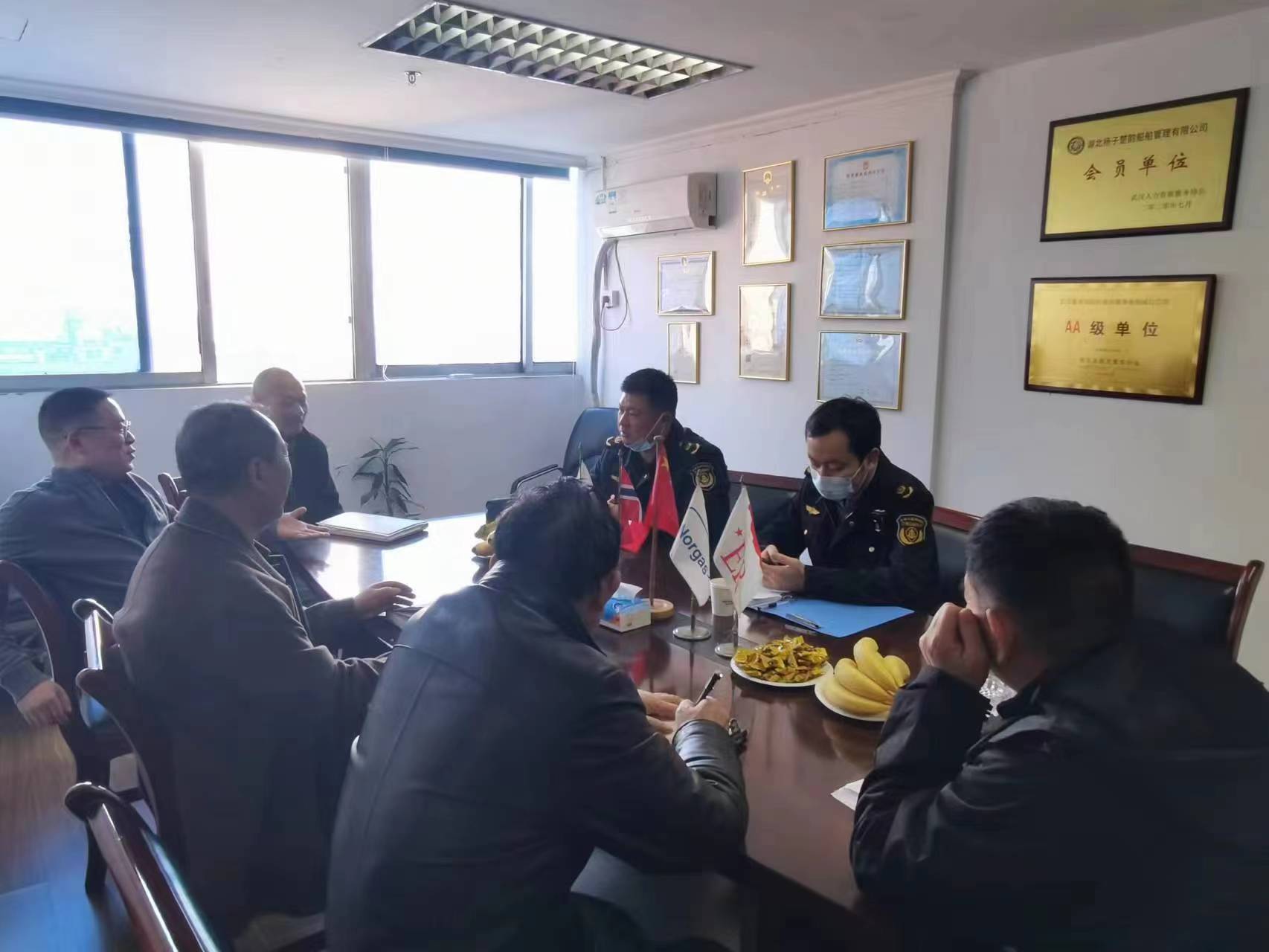 2023年03月06日上午10时,武汉市交通运输管理局船舶行政监督检查大队夏队长一行两人来我司检查船舶管理业务资质,通过查看记录、询问专职管理人员等方式对我司日常船舶管理工作进行了全方位的检查,对我司所做工作给予了充分肯定。