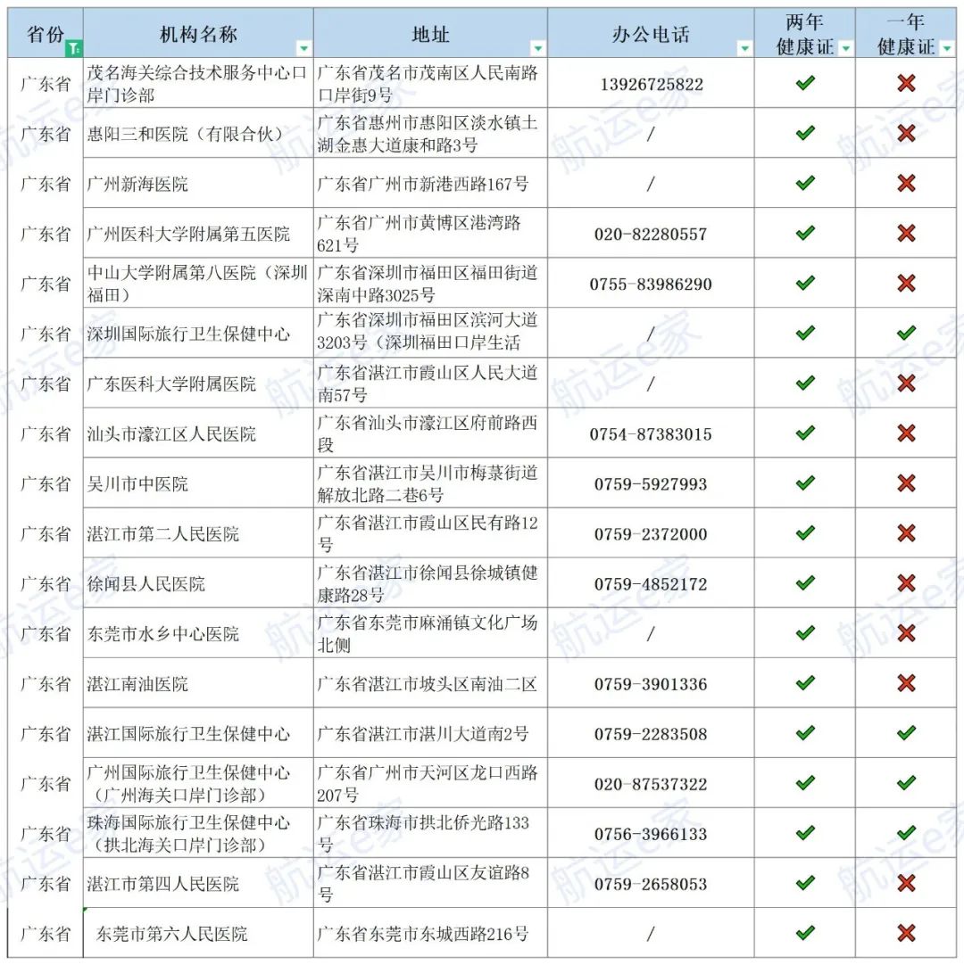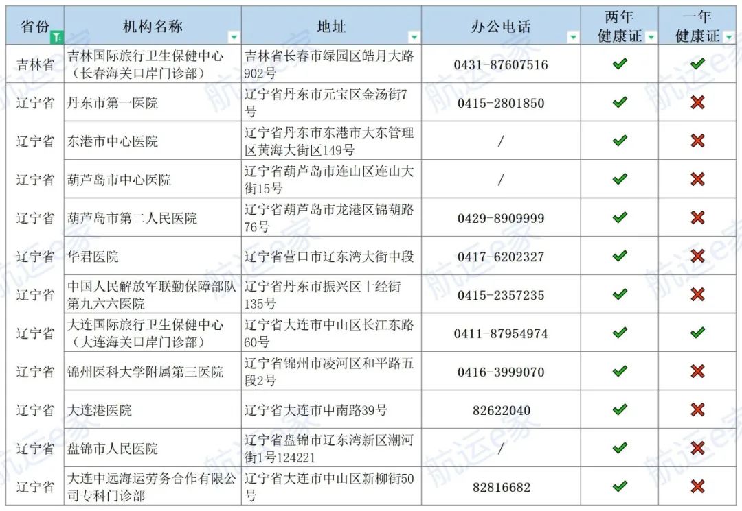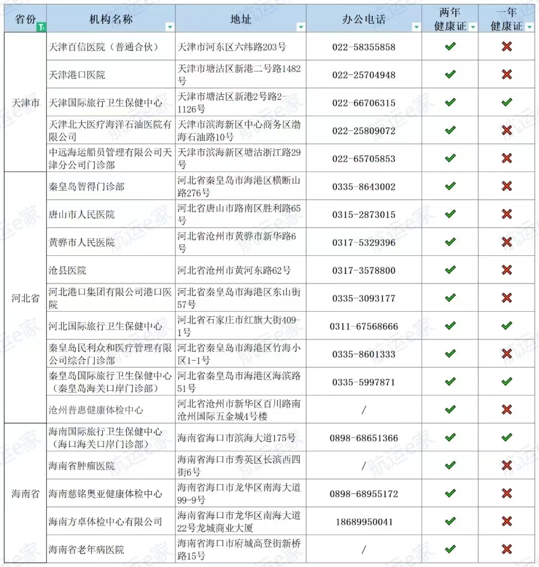 船员体检丨2024最新全国船员体检机构(一检两证)!转发收藏