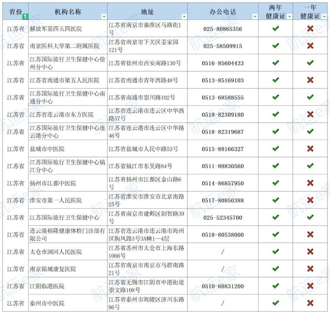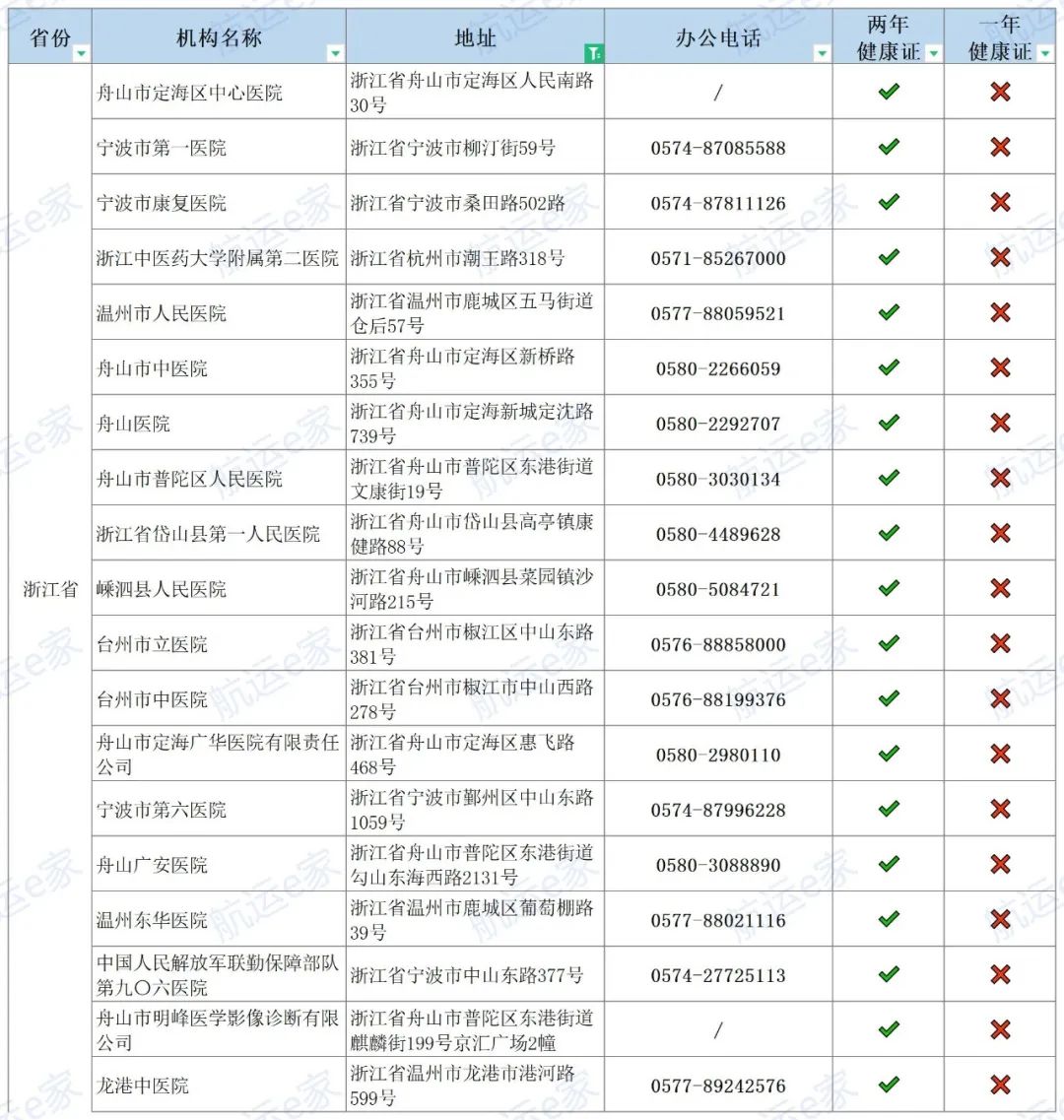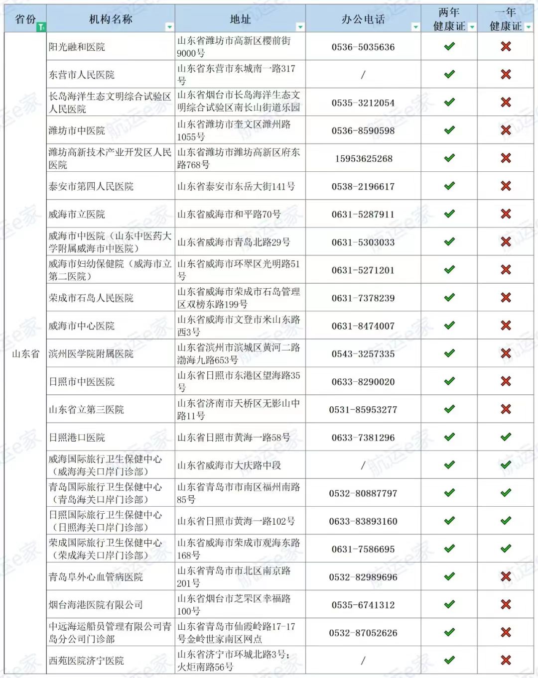 船员体检丨2024最新全国船员体检机构(一检两证)!转发收藏