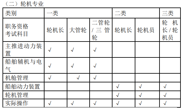驾驶员升三类船长、三类轮机员升三类轮机长免予适任考试;2.不得超越类别和职务资格申请理论考试和实际操作考试。